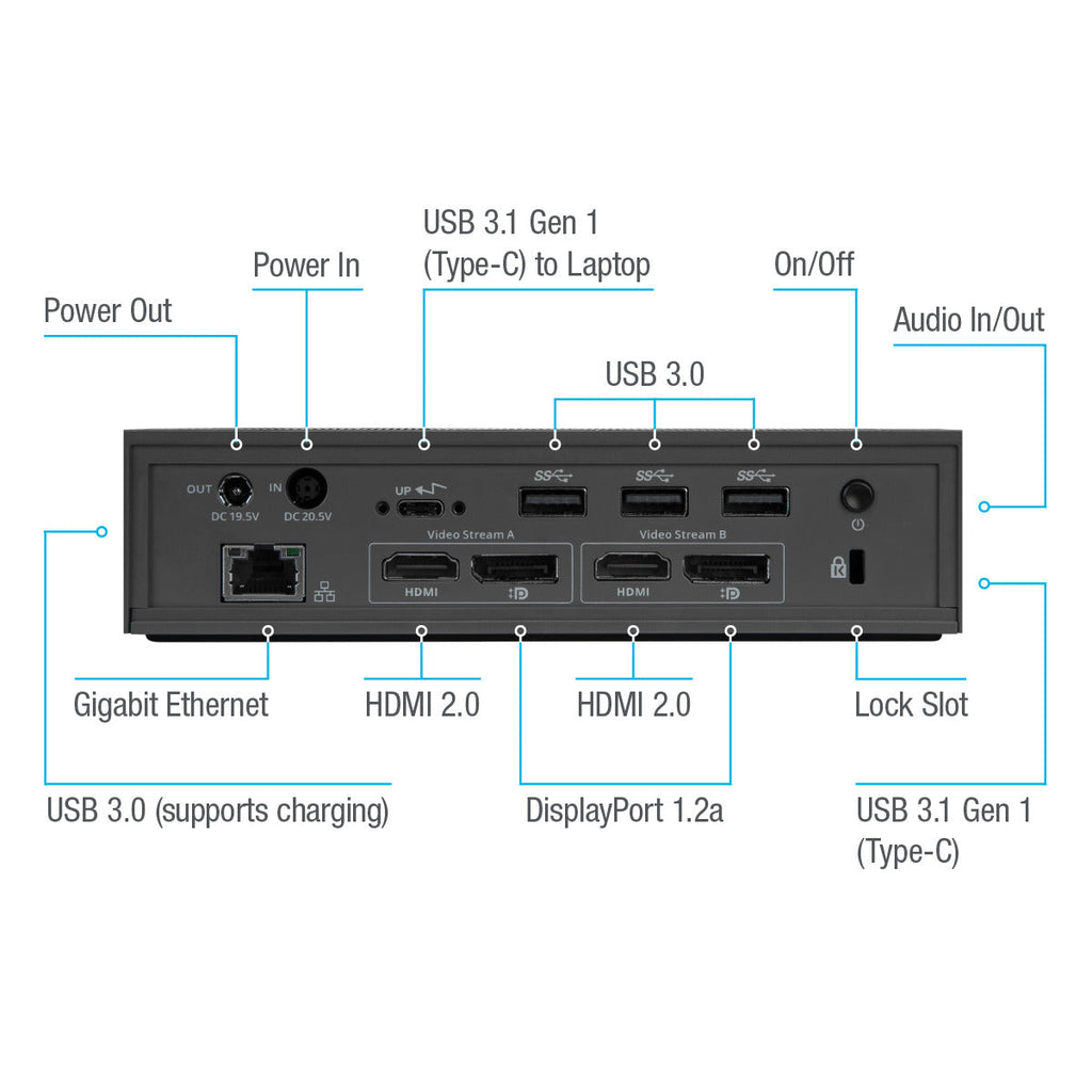This dock combines performance plus power, with the ability to plug in two 4K monitors and power your laptop while saving space on your desk.